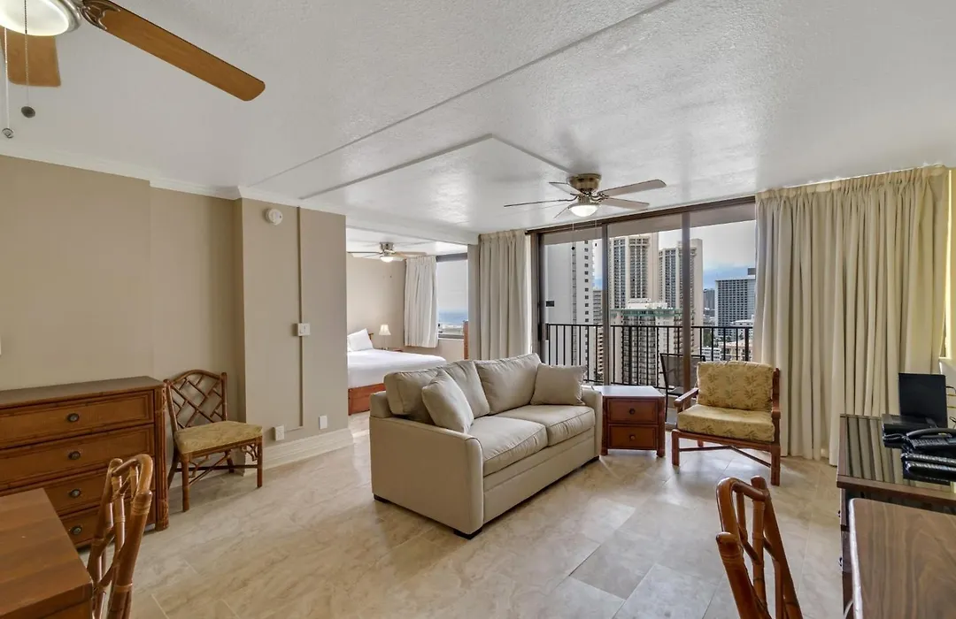 For sports enthusiasts, the 50 m² Tower 1 Suite 2214 - Kp Condo apartment has a great location as it is set 3.2 km from Honolulu Stadium, also Waikiki Shopping Plaza is less than 14 minutes' walk from. Featuring a Jacuzzi and a sauna, this 1-bedroom apartment is located just walking distance from the water Kuhio Beach Park.